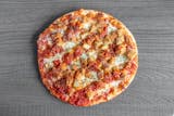 Red Sauce, crumbled spicy chorizo, banana peppers, and mozzarella cheese topped with a cilantro lime cream